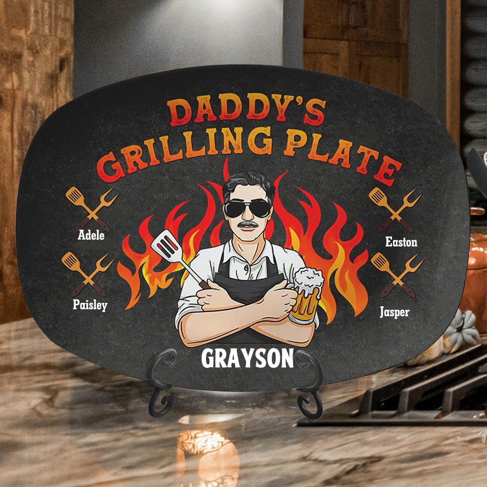Gepersonaliseerde BBQ-grillplaat voor papa met de naam van de kinderen als aandenken aan een cadeau-idee voor Vaderdag