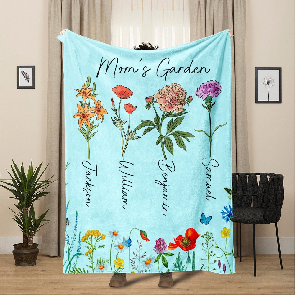 Gepersonaliseerde geboortebloemdeken voor oma
