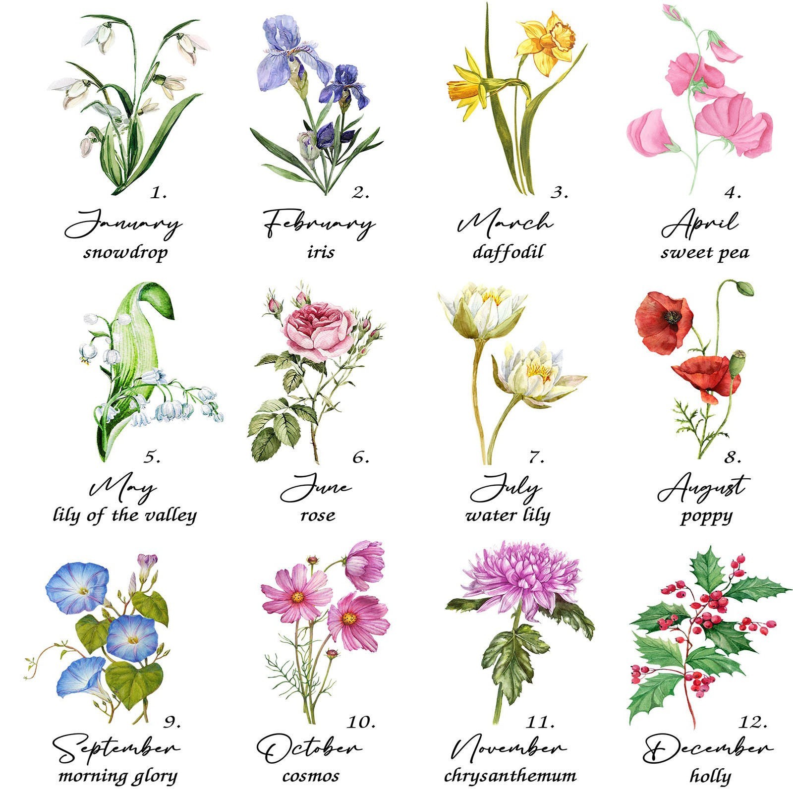 -- Selecteer 8e bloemtype -- Januari-Sneeuwklokje Februari-Iris Maart-Narcis April-Zoete Erwt Mei-Lelietje van Dalen Juni-Roos Juli-Waterlelie Augustus-Klaproos September-Ochtendglorie Oktober-Kosmos November-Chrysant December-Hulst