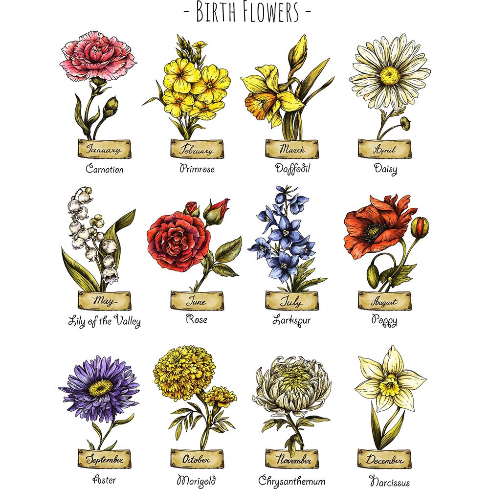 -- Selecteer 9e bloemtype -- Januari-Anjer Februari-Sleutelbloem Maart-Narcis April-Madeliefje May-Lily of the Valley Juni-Roos Juli-Ridderspoor Augustus-Klaproos September-Aster Oktober-Goudsbloem November-Chrysanthemum December-Narcis