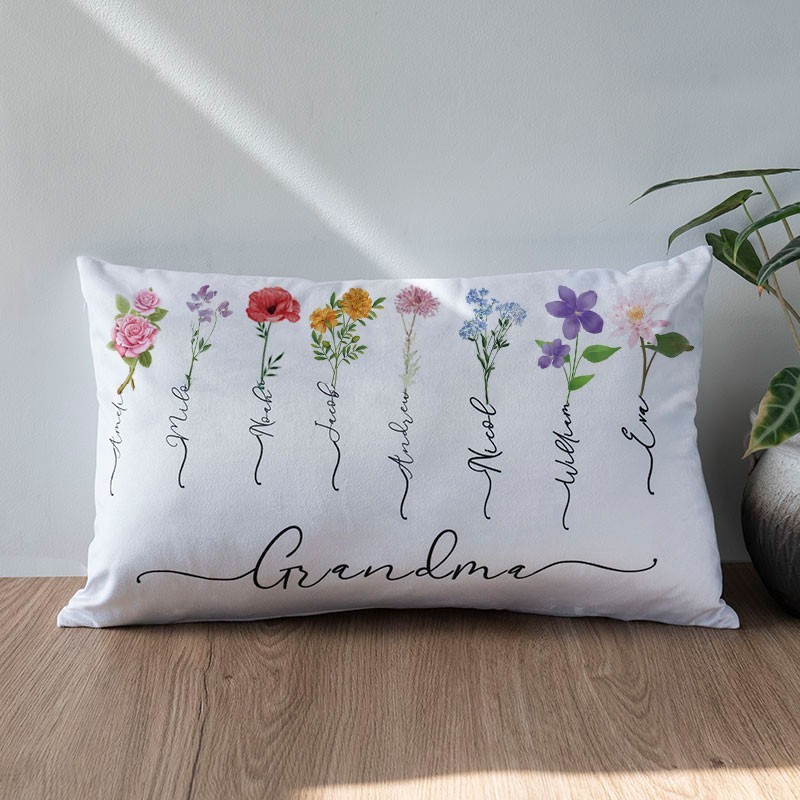 Introducing our exquisite Custom Grandma's Garden Pillow, a heartfelt and personalized tribute to the matriarch of your family. This beautifully crafted pillow is more than just a piece of decor; it's a timeless expression of love and admiration.
