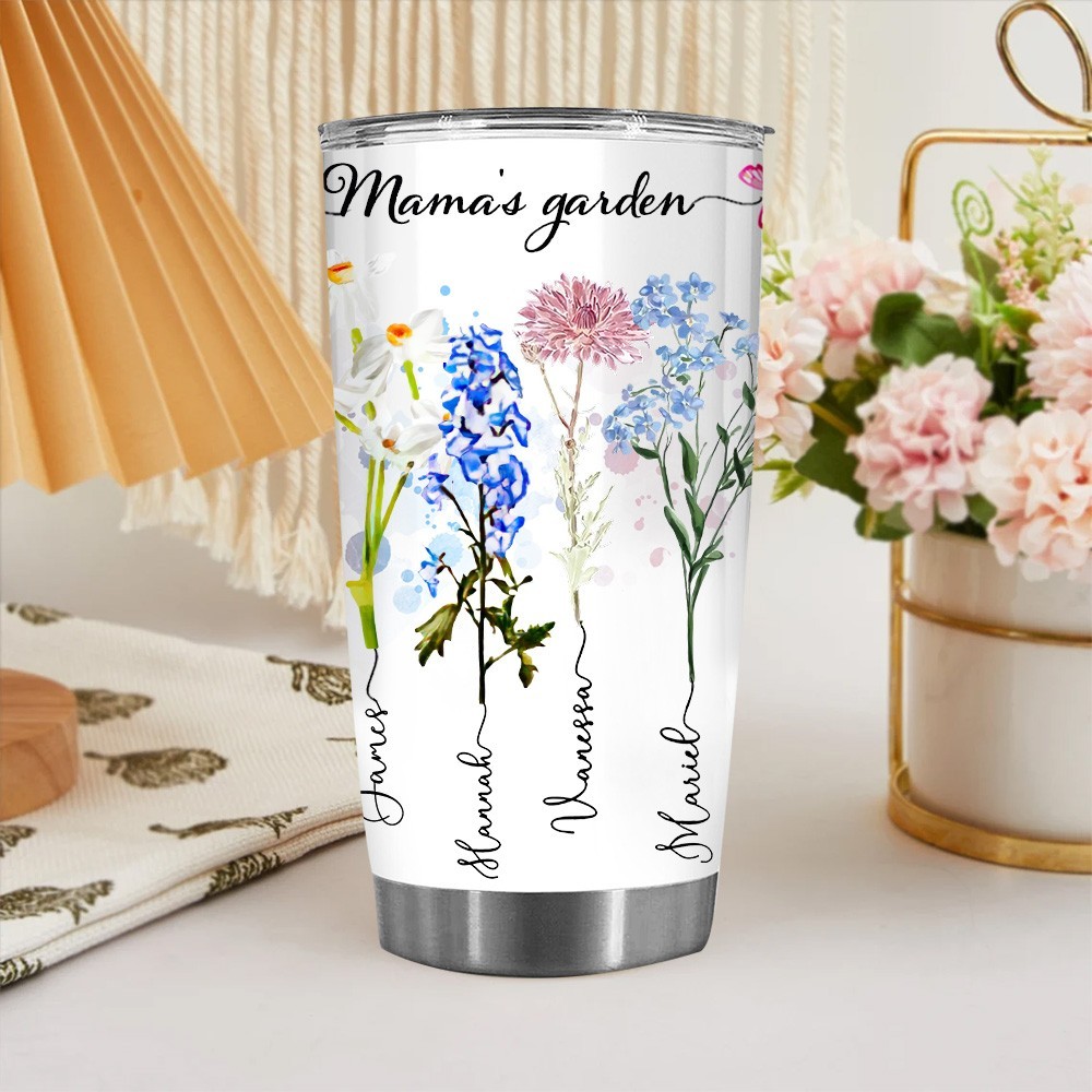Gepersonaliseerde geboortebloembeker met kindernamen voor moeder en oma