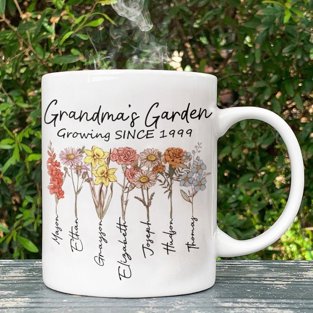 Gepersonaliseerde geboortemaand bloemenmok voor moeder