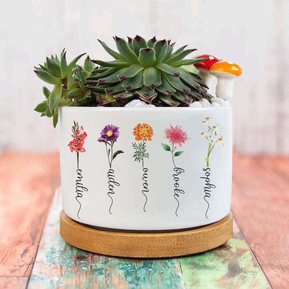 Gepersonaliseerde oma's tuin geboorte bloempot met namen cadeaus Moederdag cadeau Kerstcadeau