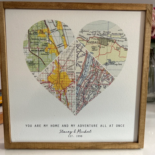 Gepersonaliseerde Hartkaart voor koppels, houten avonturenreiskaart, cadeaus voor lange afstanden, huwelijksverjaardagscadeau, kerstcadeau