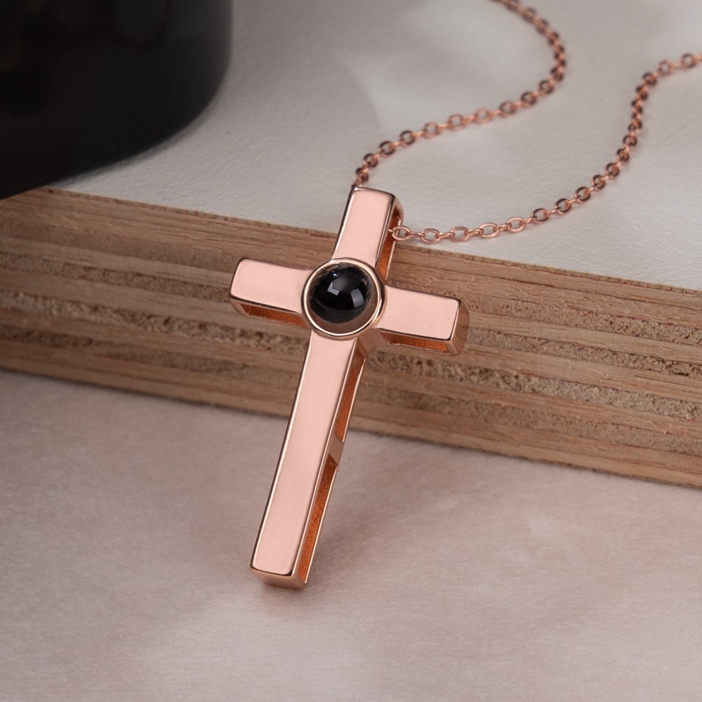 Gepersonaliseerde kruisprojectieketting met afbeelding erin Vaderdagcadeaus