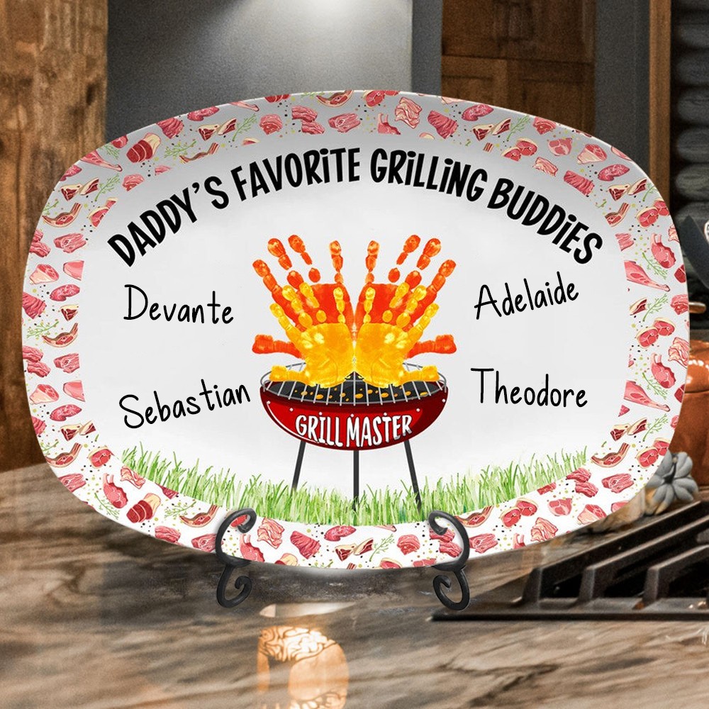Gepersonaliseerde favoriete grillmaatjes van papa, gepersonaliseerde handafdruk BBQ-plaat met namen van kinderen, cadeau-ideeën voor Vaderdag