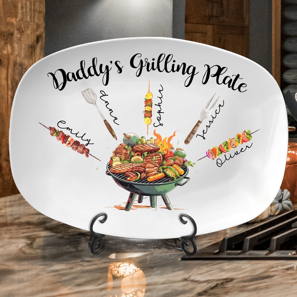 Gepersonaliseerde grillplaat voor papa met namen Cadeau voor papa van Kids Vaderdagcadeau