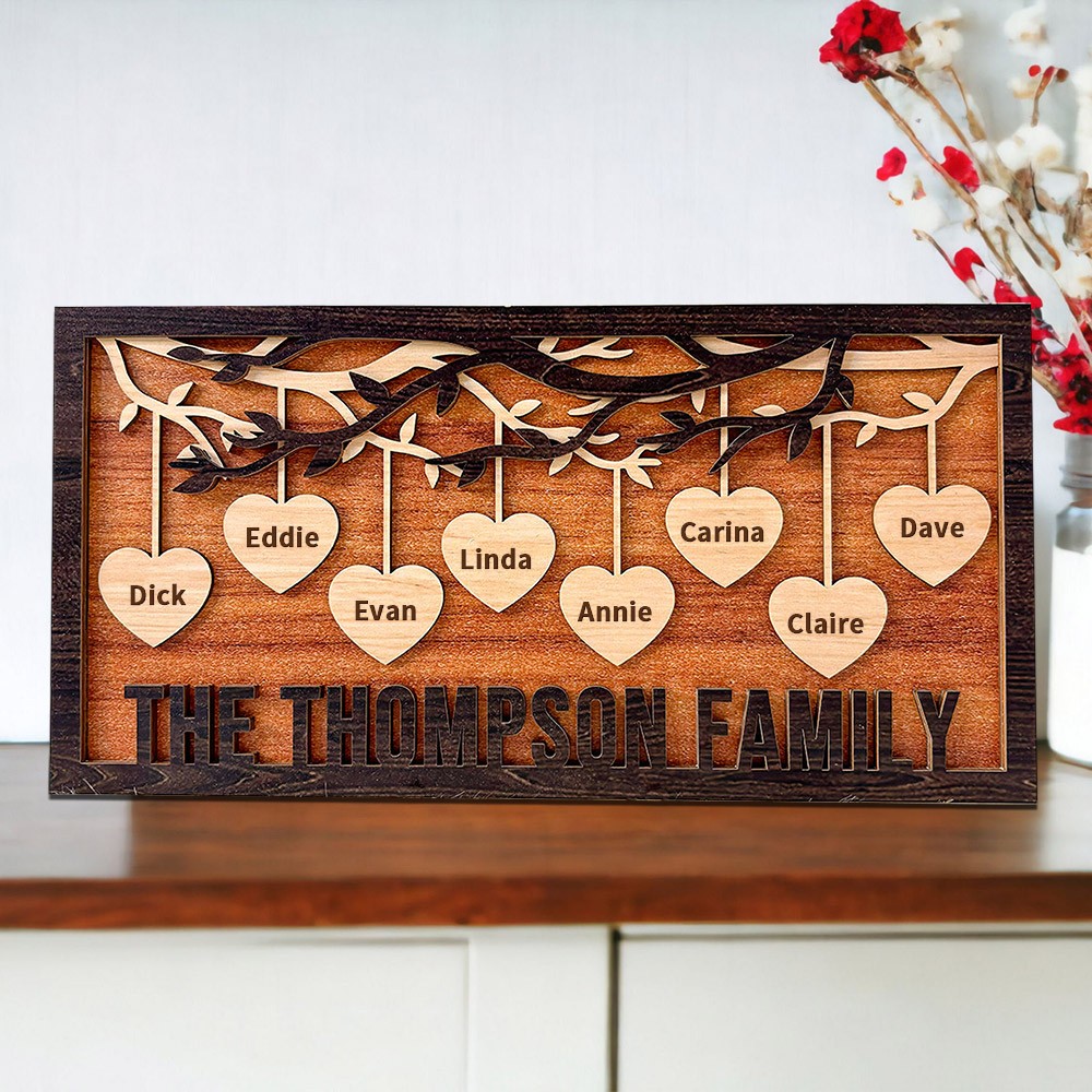 Gepersonaliseerd gegraveerd hangend hart stamboom naambord jubileumgeschenken familie kerstcadeau