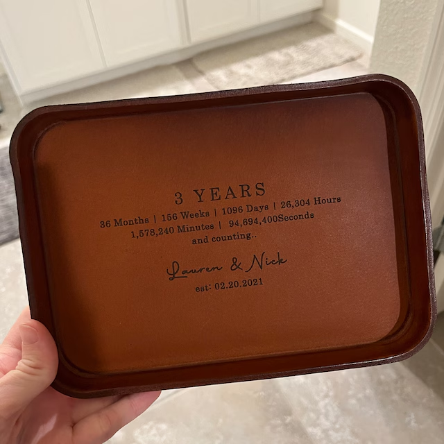 Gepersonaliseerde gegraveerde leren dienblad 3-jarig jubileumcadeau voor echtgenoot/vriend Kerstcadeau voor hem