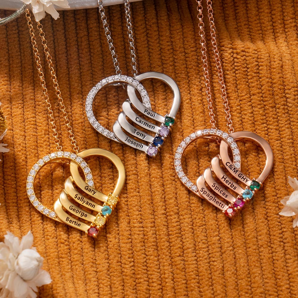 Gepersonaliseerde gegraveerde namenketting met geboortestenenontwerp, aandenken voor moeder, oma, nieuwe moeder, cadeau-ideeën