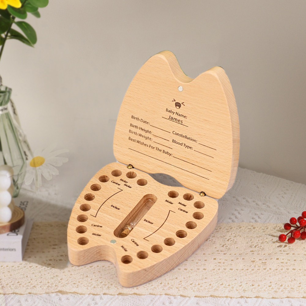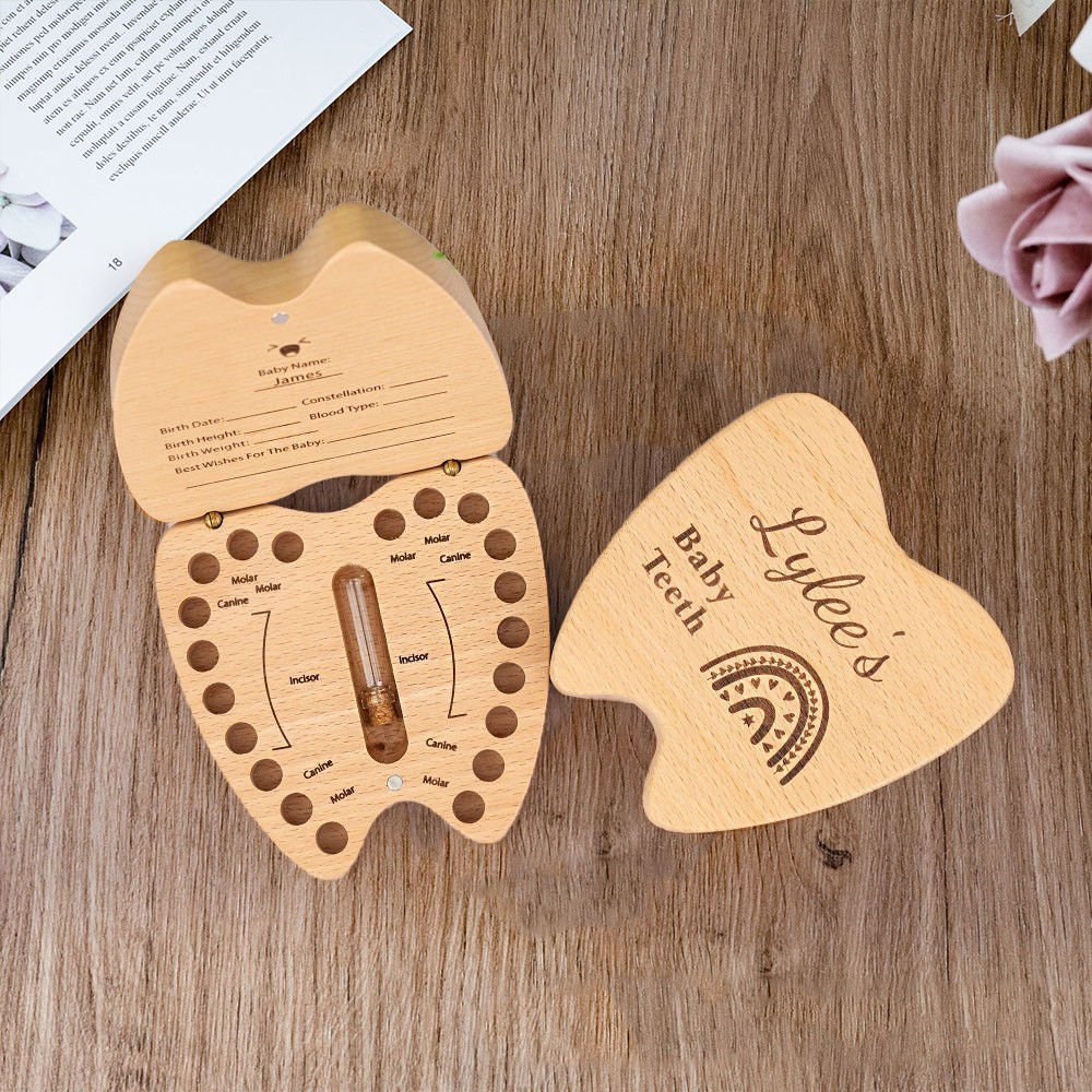 Gepersonaliseerde gegraveerde houten babytandenfeedoos, gepersonaliseerde bewaardoos voor tanden, babyshowercadeaus