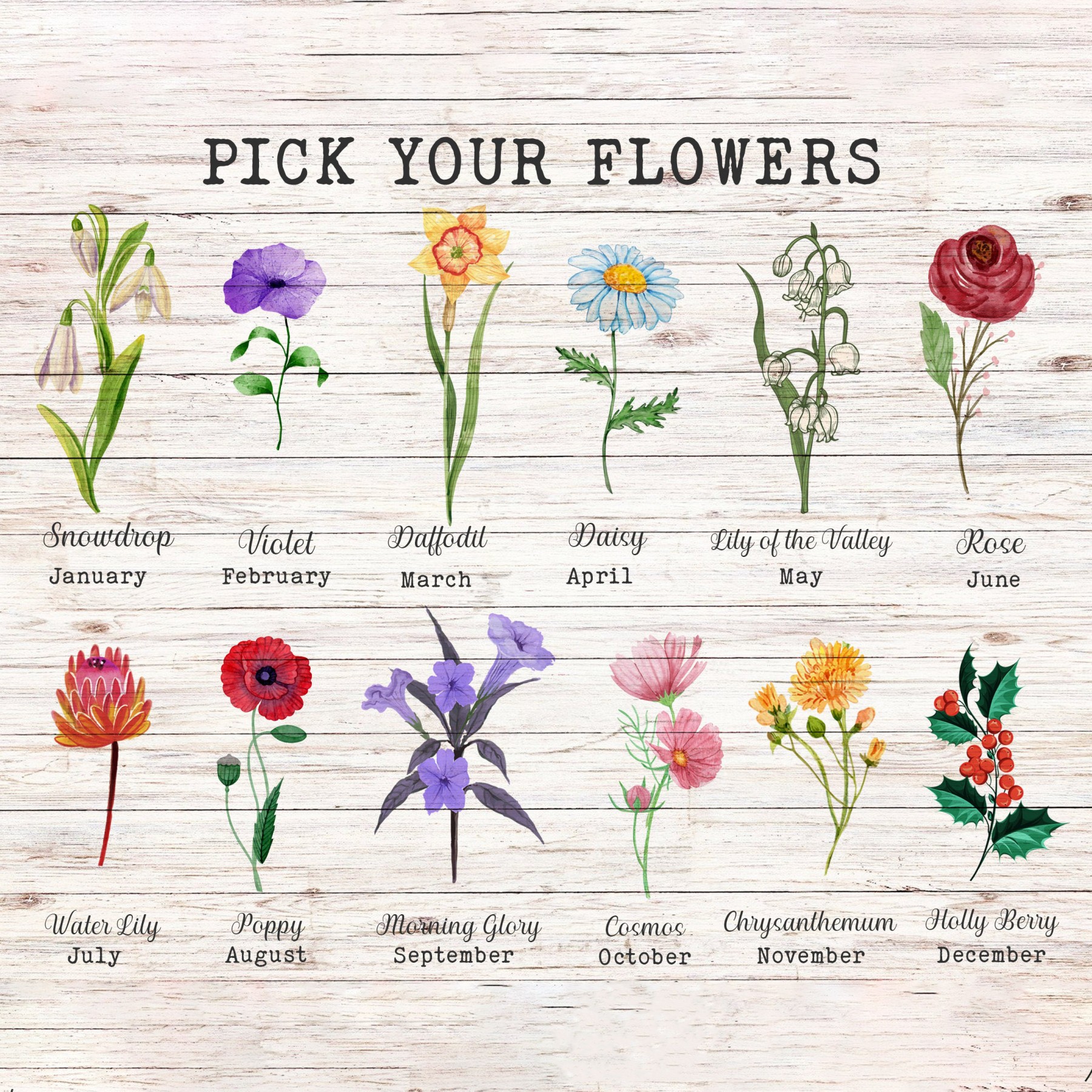 -- Selecteer 12e bloemtype -- Januari-Sneeuwklokje Februari-Viooltje Maart-Narcis April-Madeliefje Mei-Lelietje van Dalen Juni-Roos Juli-Waterlelie Augustus-Klaproos September-Ochtendglorie Oktober-Kosmos November-Chrysant December-Hulstbes