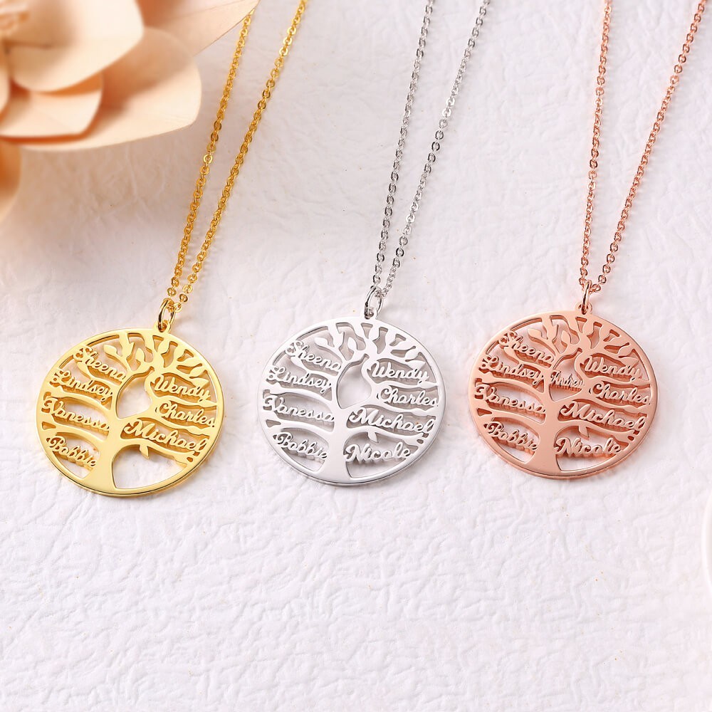 Gepersonaliseerde stamboomnamenketting Verjaardagscadeau Uniek familiecadeau voor moeder en oma