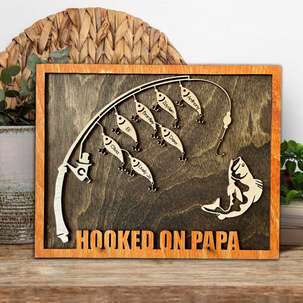 Make a splash on Father's Day with this personalized wooden frame sign, featuring a custom fish design and the names of your little ones. A unique and heartfelt gift for Dad that celebrates his love and dedication as a parent.