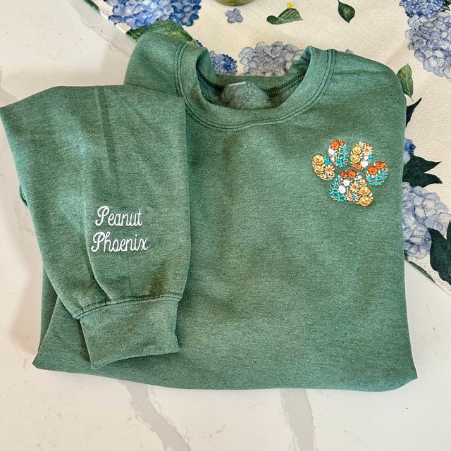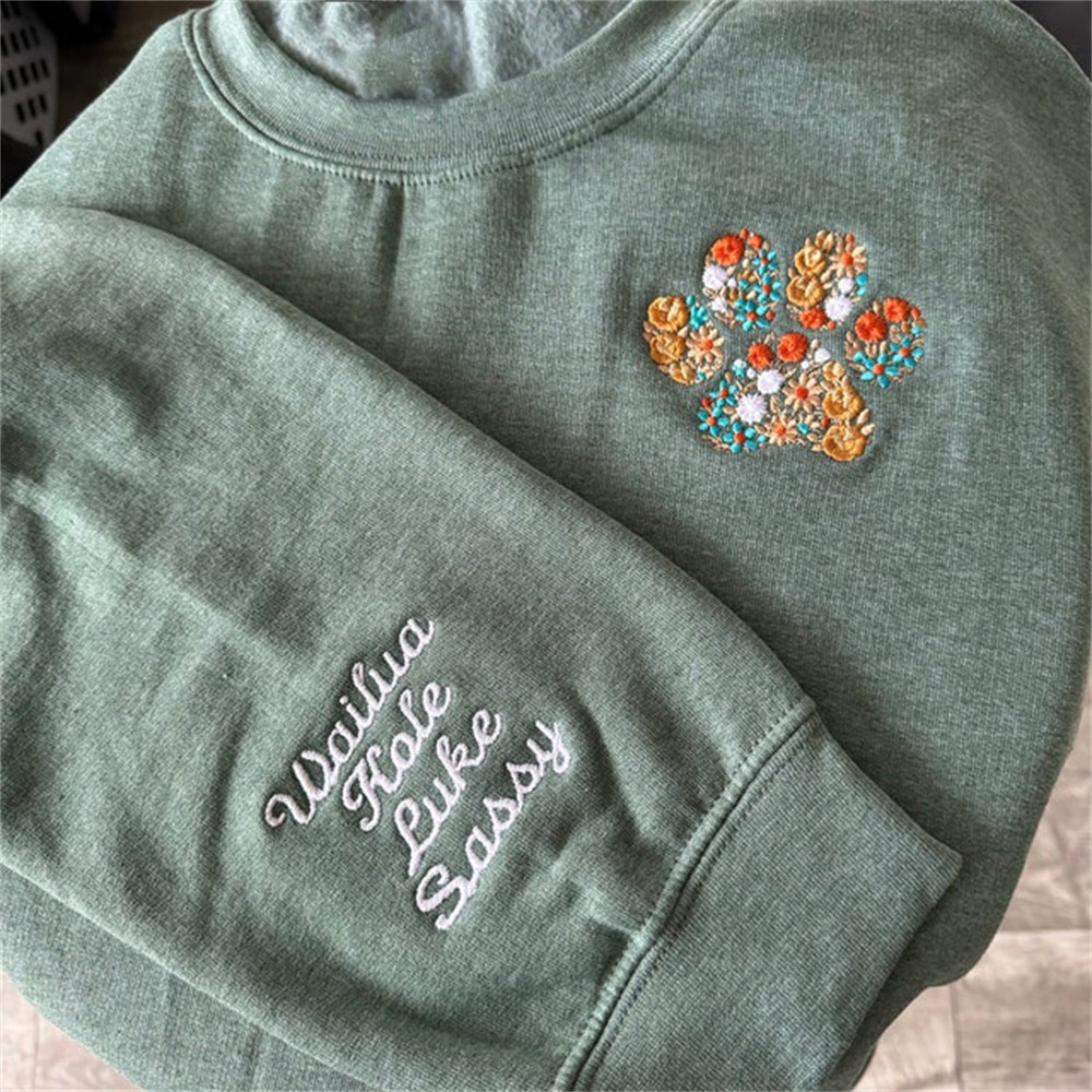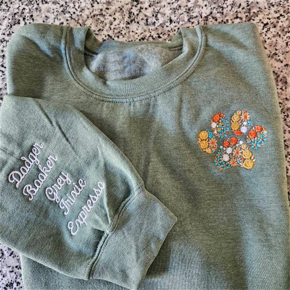 Gepersonaliseerde bloemen geborduurde huisdier poot print sweatshirt hoodie met namen Kerstcadeau ideeën Uniek cadeau voor dierenliefhebber