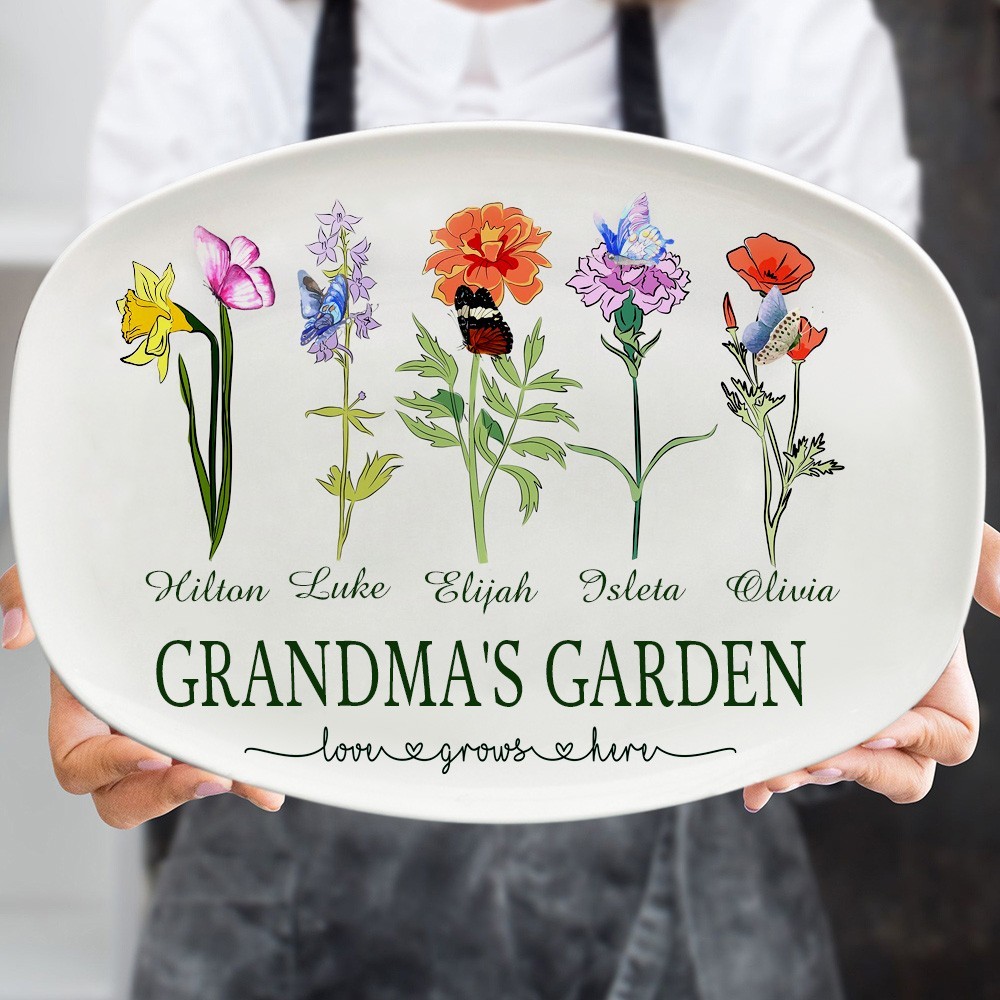 Gepersonaliseerde Granny's Garden Geboortebloemschaal met Namen