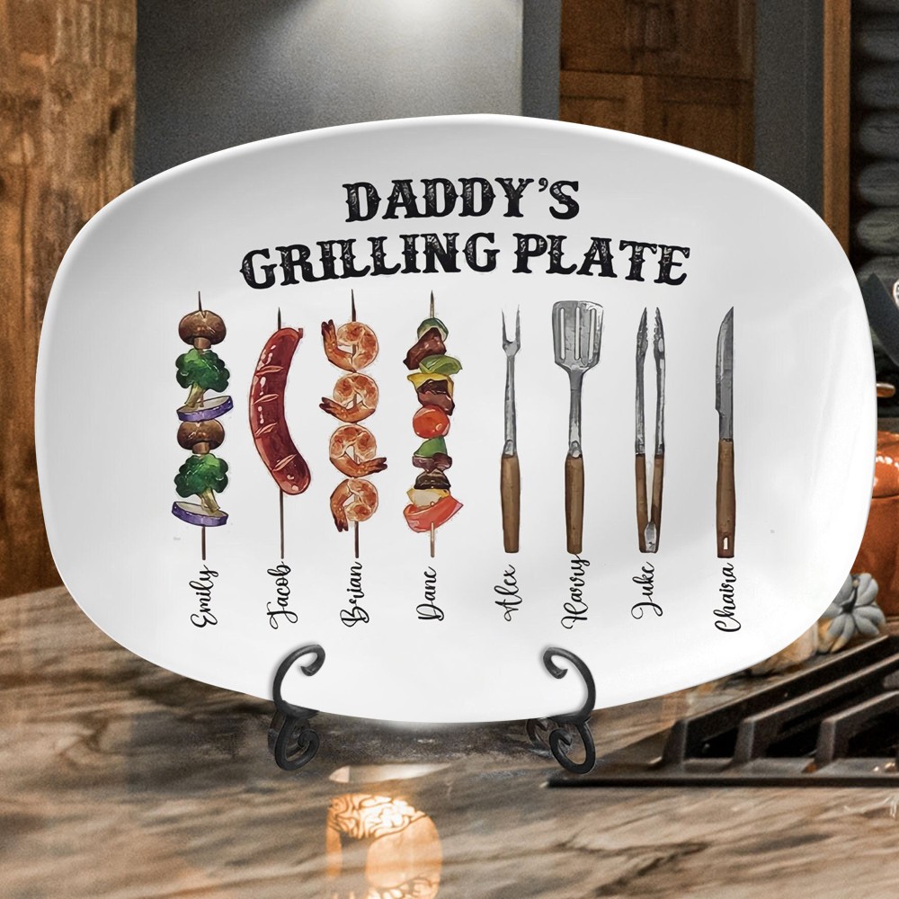 Gepersonaliseerde grillplaat met kindernamen voor papa Vaderdagcadeau