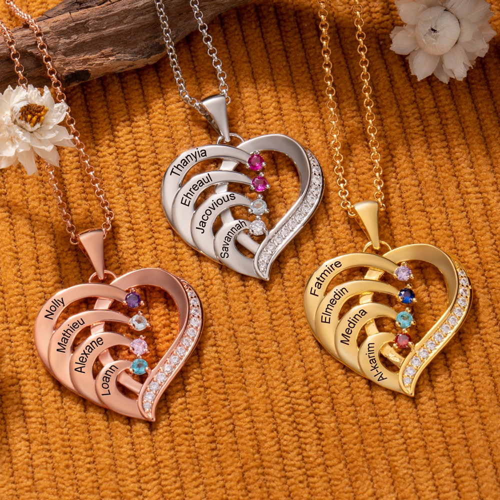 Gepersonaliseerde hartvormige namenketting met geboortestenenontwerp Uniek cadeau voor moeder en oma