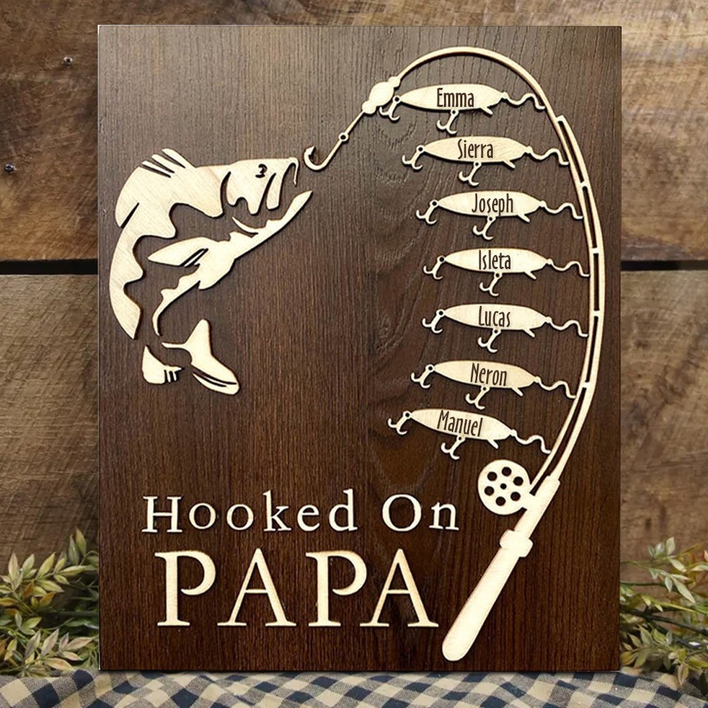 Gepersonaliseerd Hooked on Papa houten bord Vaderdagcadeau