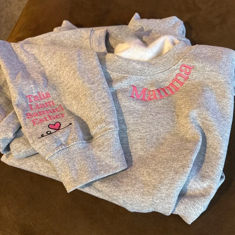 Gepersonaliseerde Mama Geborduurde Sweatshirt Hoodie Met Namen Op De Mouw Unieke Moederdag Cadeau-Ideeën
