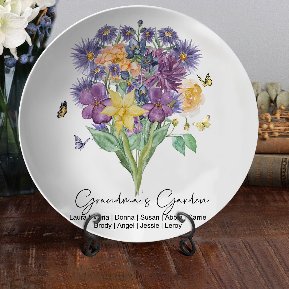 Gepersonaliseerde Moederdag-tuin Geboortebloem Aquarelboeket Platter Uniek cadeau voor moeder Oma Moederdag cadeau-ideeën