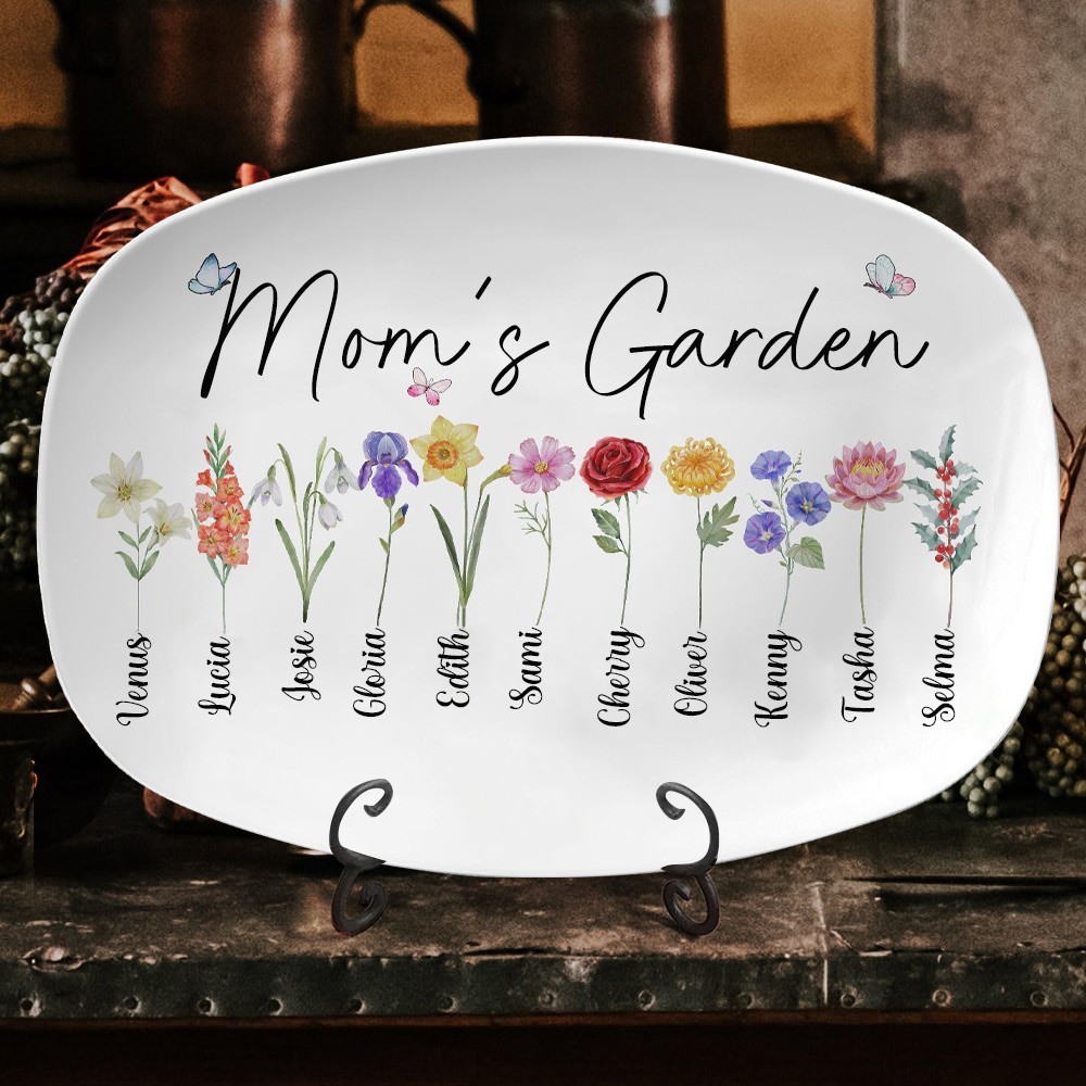 Gepersonaliseerde geboortebloemschaal voor moeders met namen