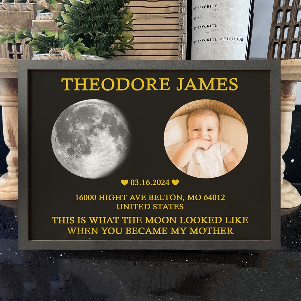 Gepersonaliseerd maanfaseprintframe voor pasgeborenen als cadeau voor nieuwe moeders Ideeën voor Moederdagcadeaus