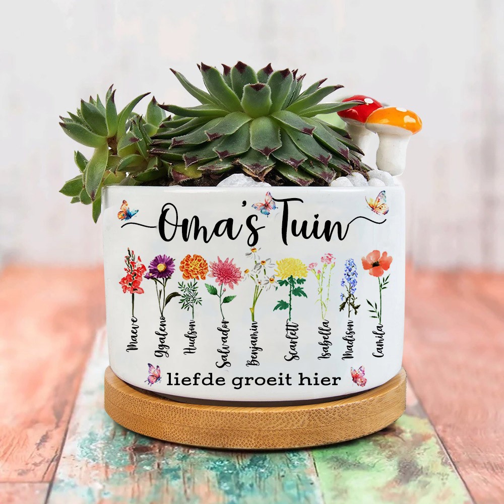 Gepersonaliseerde oma's tuin geboorte bloempot met namen cadeaus Moederdag cadeau Kerstcadeau