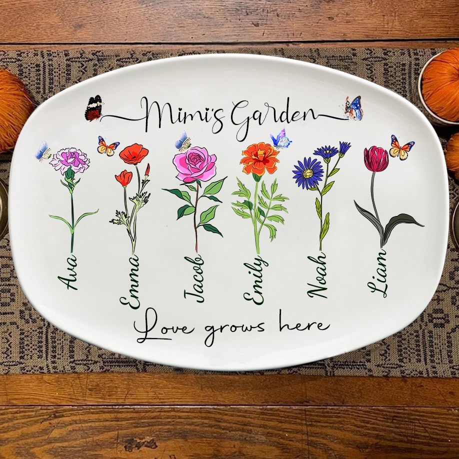 Gepersonaliseerde Nana's Garden Platter met geboortebloem
