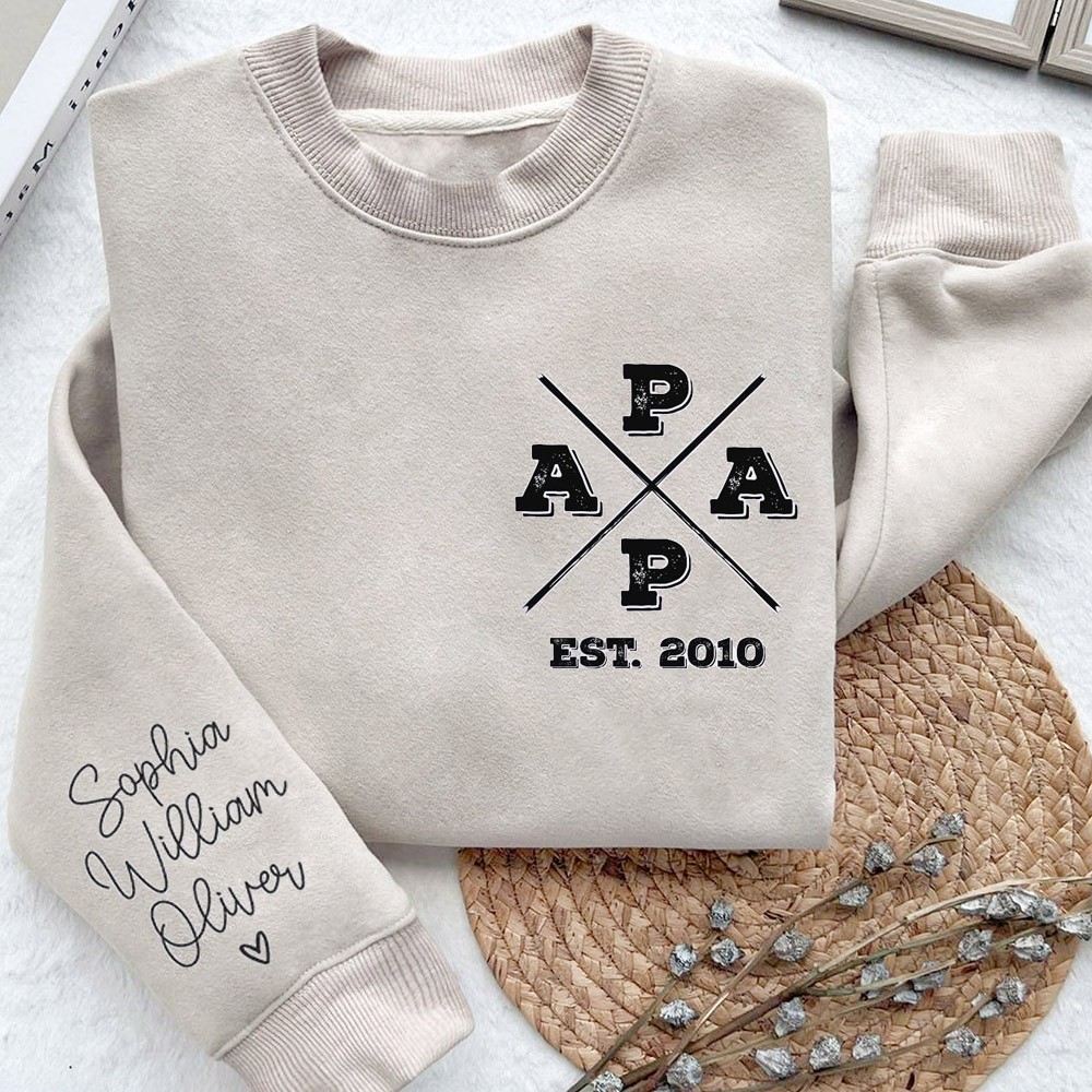Gepersonaliseerde Papa Geborduurde Sweatshirt Hoodie Met Datum Vaderdag Cadeau-ideeën
