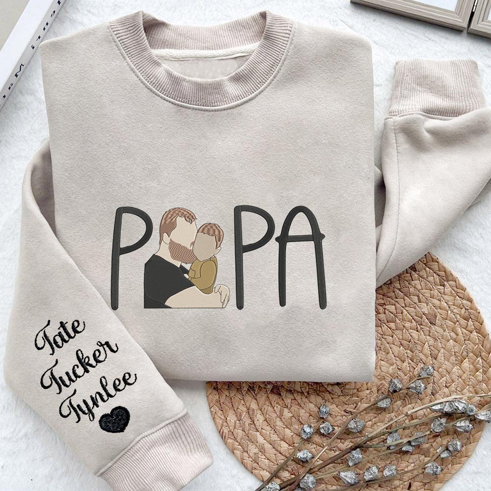 Gepersonaliseerde Papi geborduurde sweatshirt hoodie met familiefoto Uniek cadeau voor papa Vaderdag cadeau-ideeën