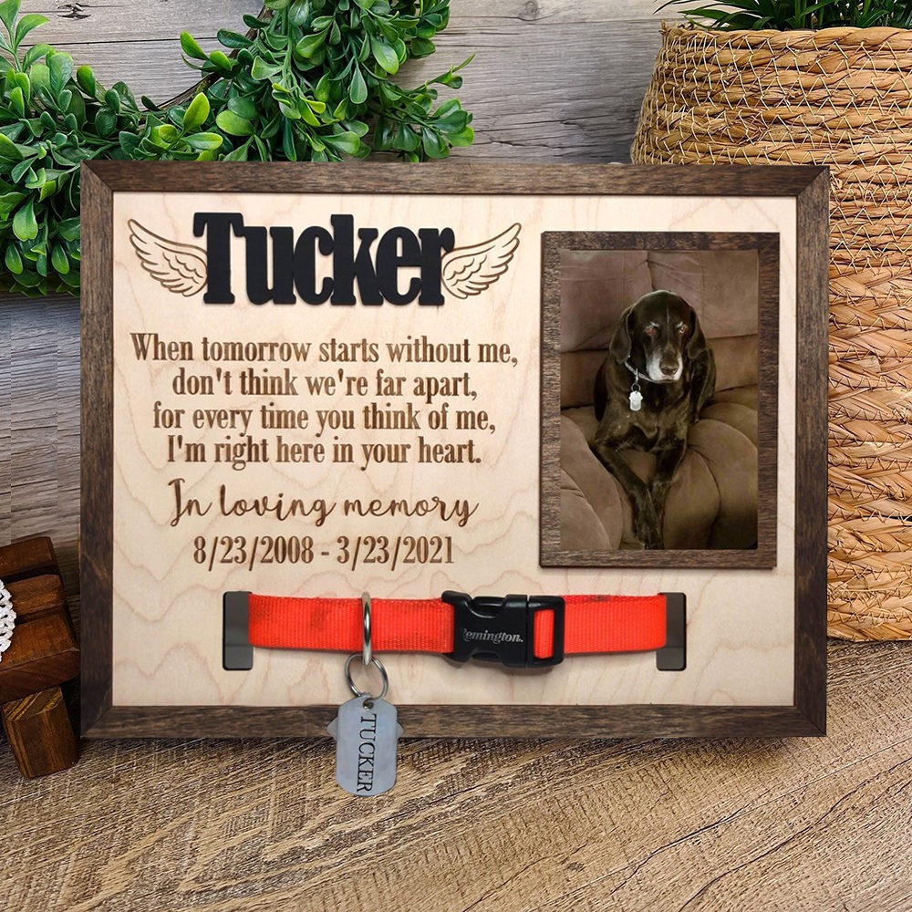 Gepersonaliseerd huisdier herdenkingsfotolijstje met halsbandhouder Herinneringsgeschenk voor het verlies van een huisdier