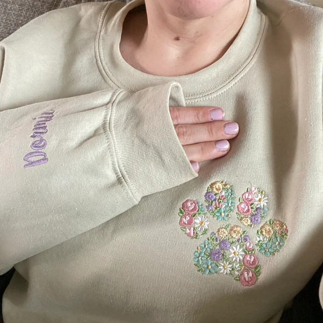Gepersonaliseerde Pet Paw Floral geborduurde Sweatshirt Hoodie Aandenken Cadeau-ideeën Unieke Kerstcadeaus voor Dierenliefhebbers