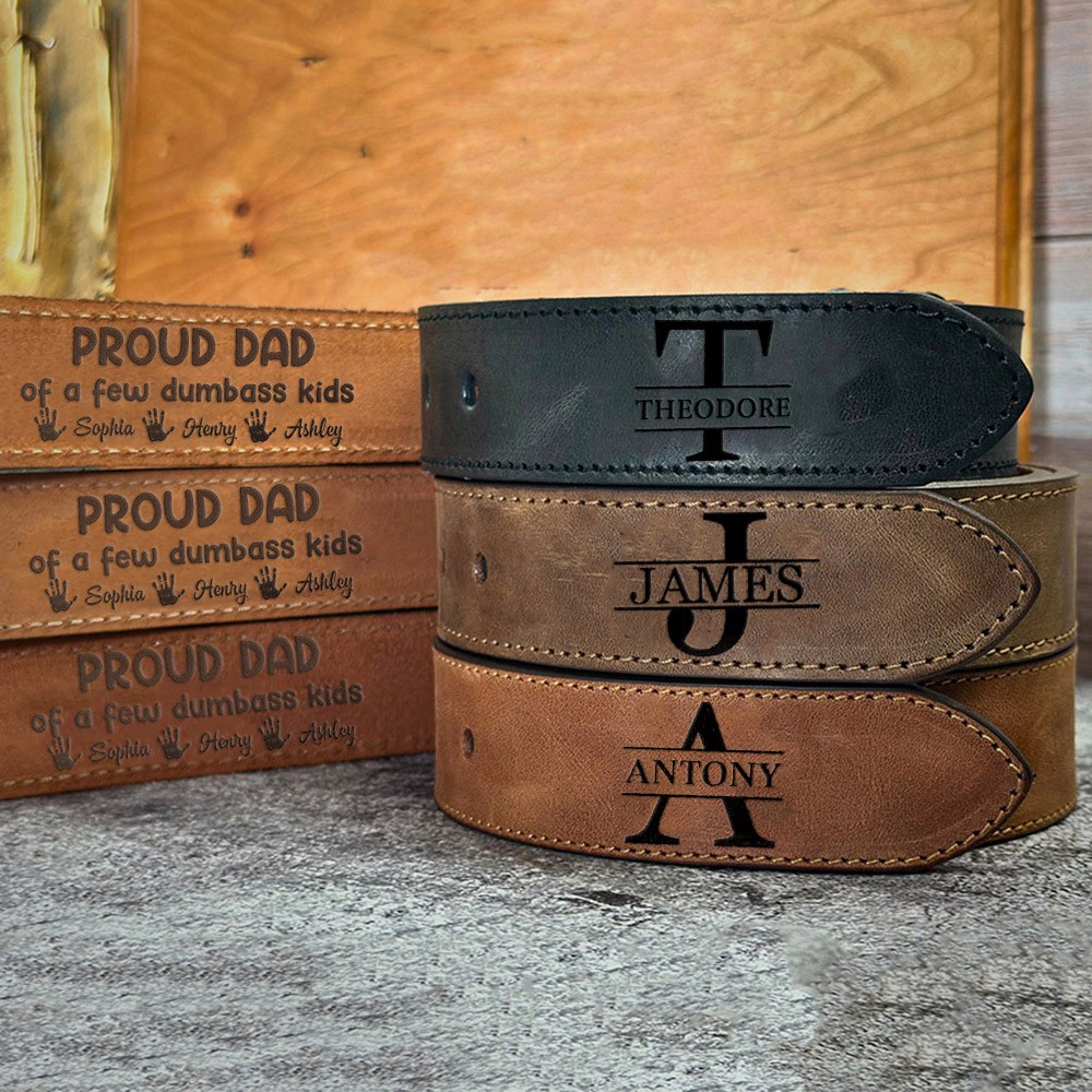 Gepersonaliseerde Trotse Vader Van Een Paar Domme Kinderen Leren Riem Met Gegraveerde Namen Vaderdagcadeau