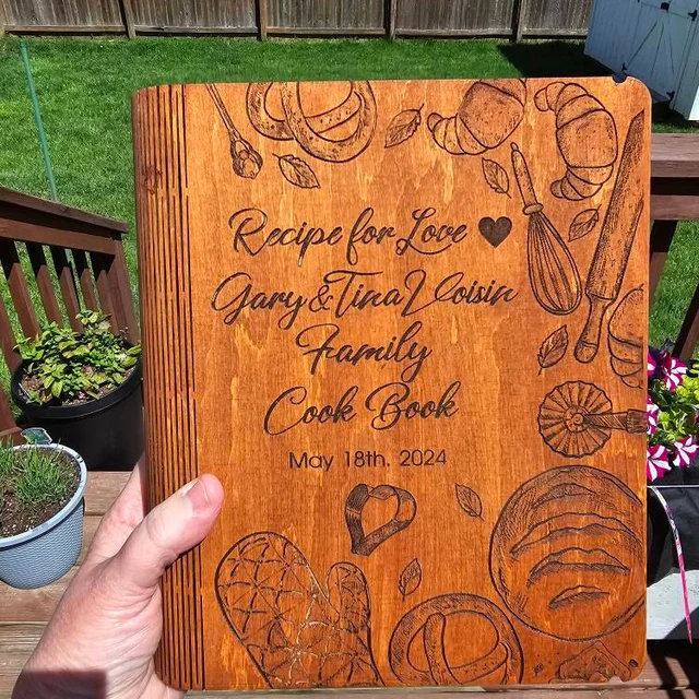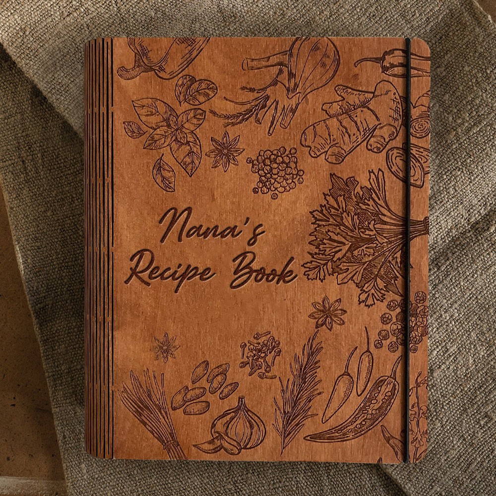 Gepersonaliseerd receptenboek, blanco map, op maat gegraveerd houten dagboek voor moeder, kerstcadeau voor haar