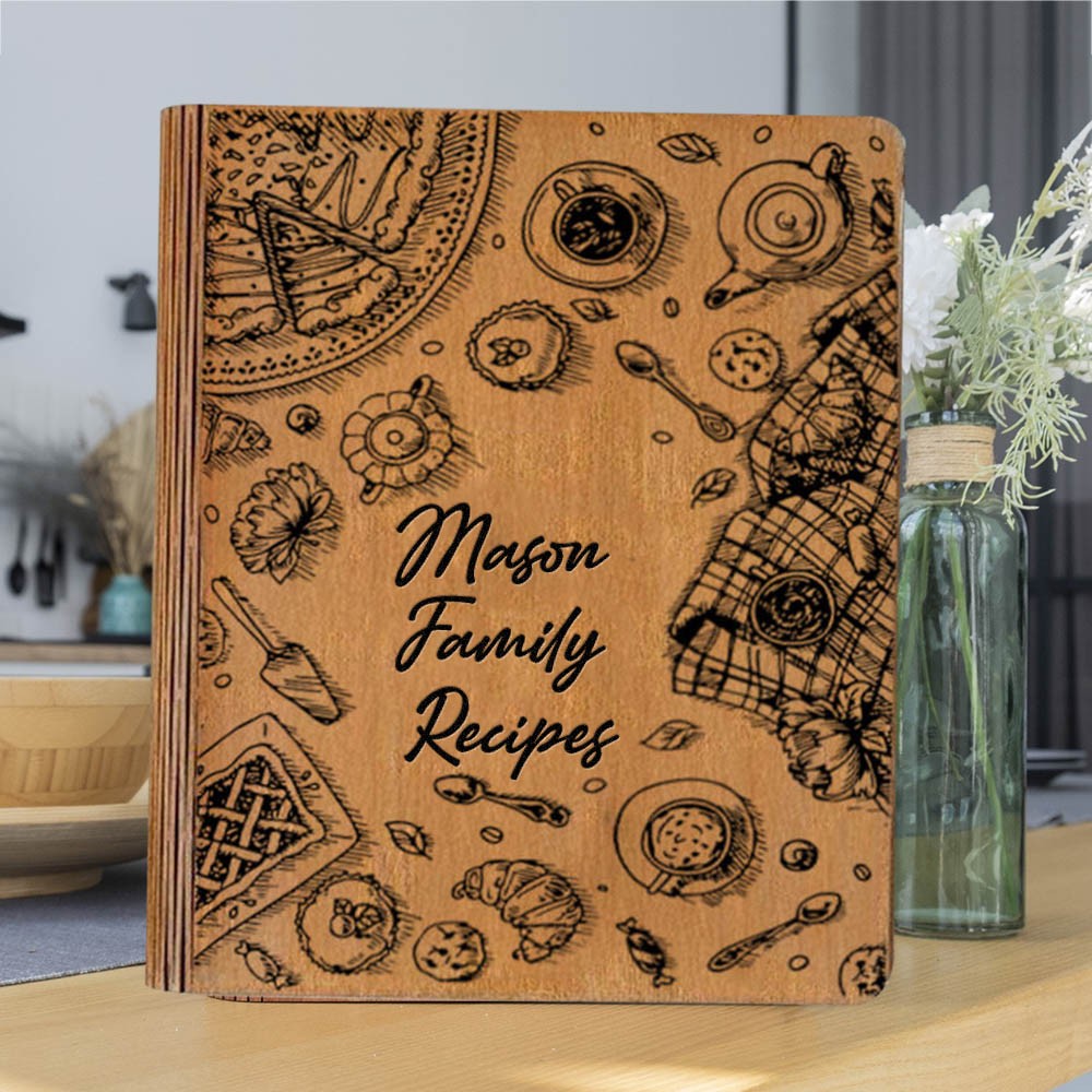 Gepersonaliseerd receptenboek Houten blanco map Aangepast gegraveerd dagboek voor moeder Kerstcadeau Familiegeschenken