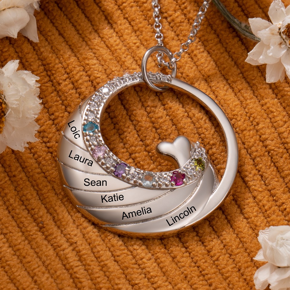 Gepersonaliseerde ronde naamketting met geboortesteenontwerp, perfect cadeau voor moeder en oma