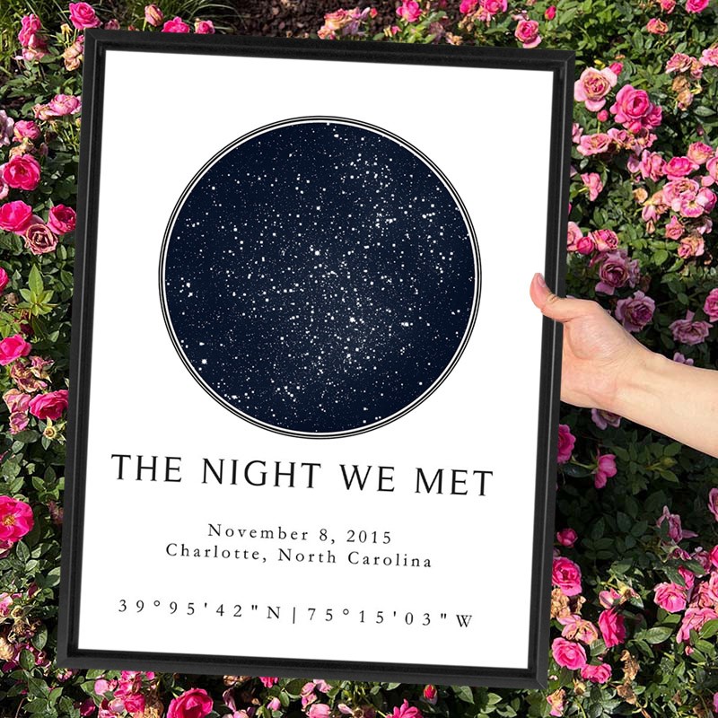 Gepersonaliseerde The Night We Met Star Map Frame By Date Jubileumcadeau-ideeën Unieke cadeaus voor koppels