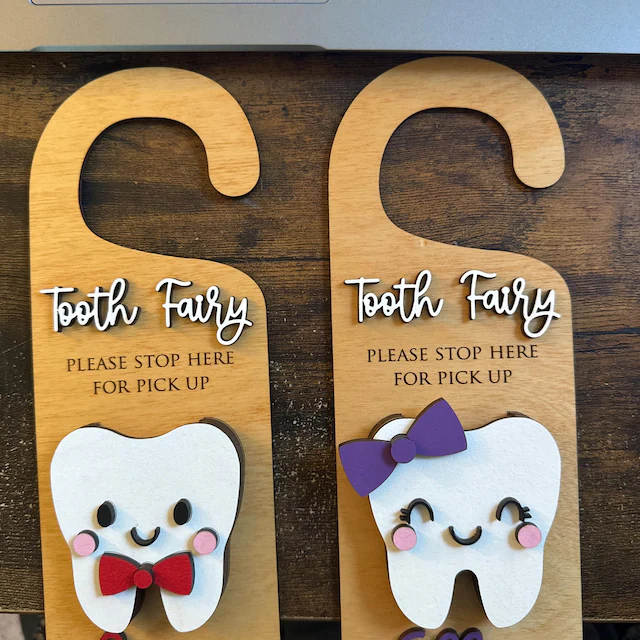 Gepersonaliseerde deurhanger in de vorm van een tandenfee met een geldhouder als aandenken voor kinderen