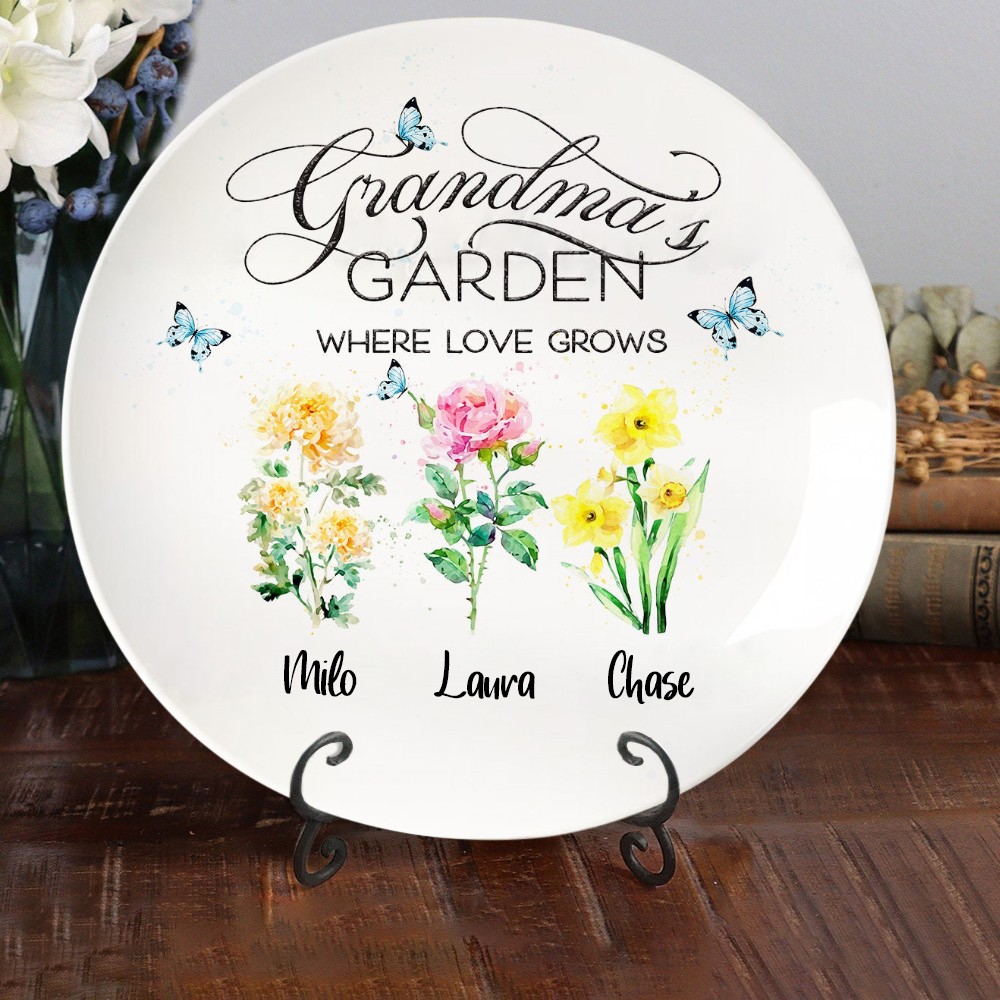 Gepersonaliseerde "Where Love Grows" Geboortebloemschaal