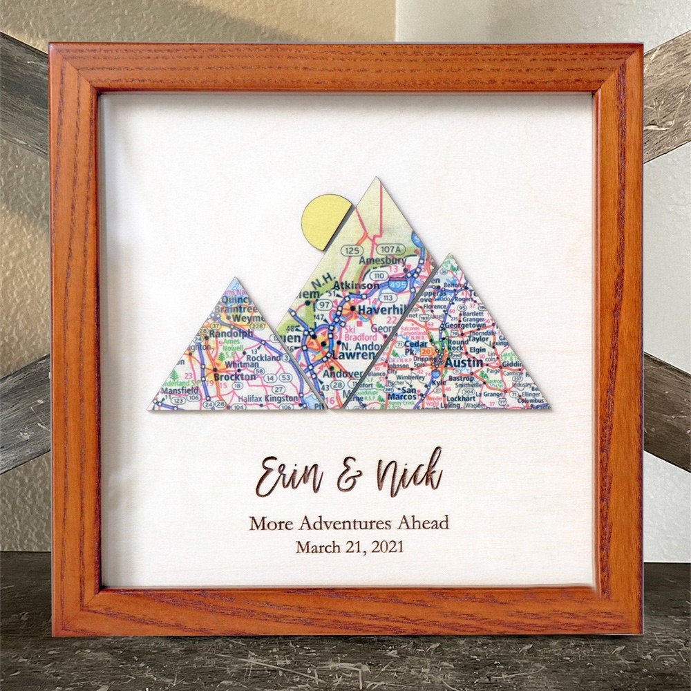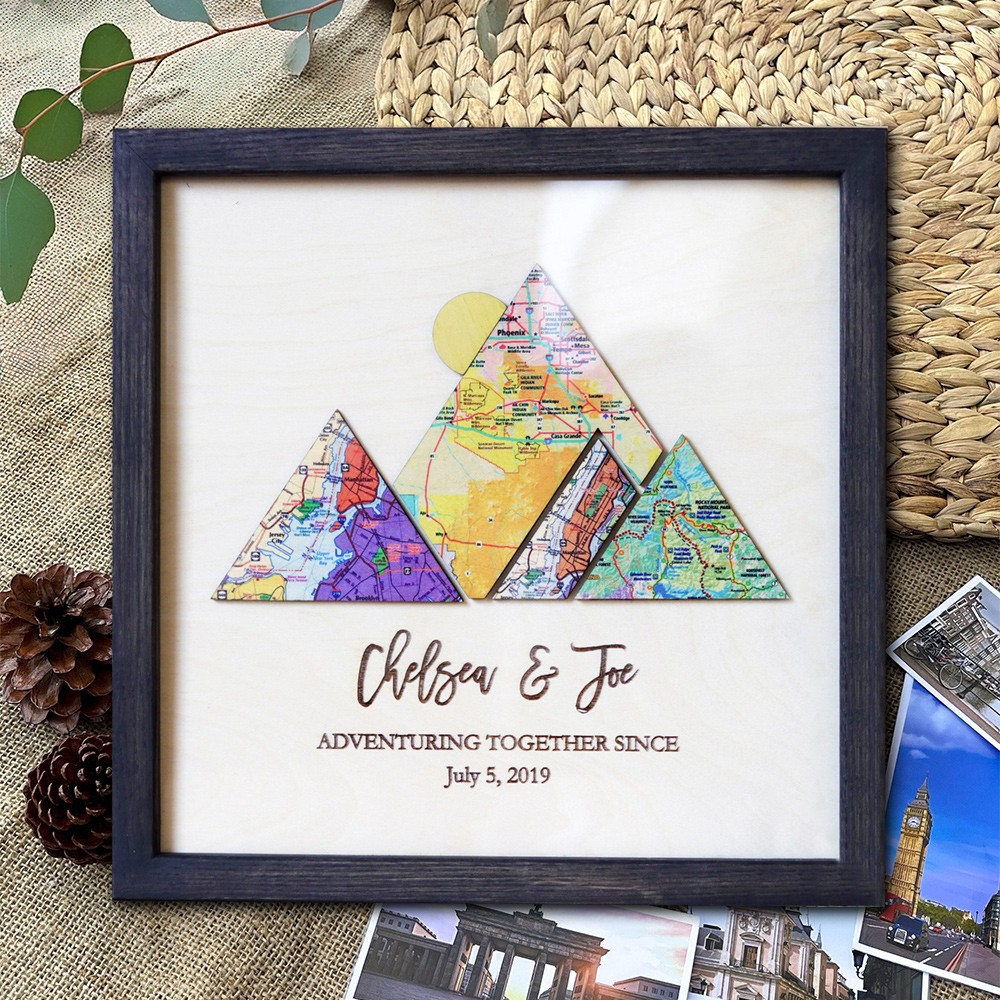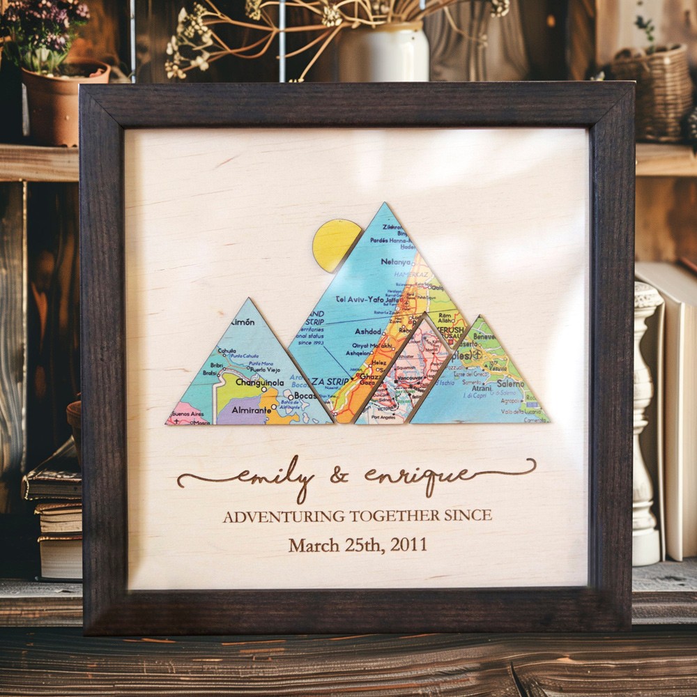 Gepersonaliseerde houten avonturenreiskaart als aandenken voor een jubileum, uniek kerstcadeau
