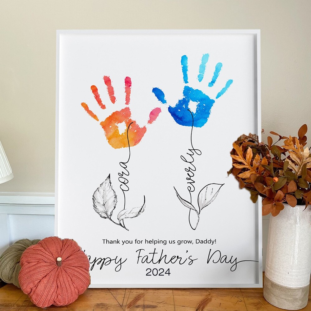Gepersonaliseerd houten DIY handafdruk frame bord met kindernamen Familie aandenken cadeau voor papa Aandenken Vaderdag cadeaus