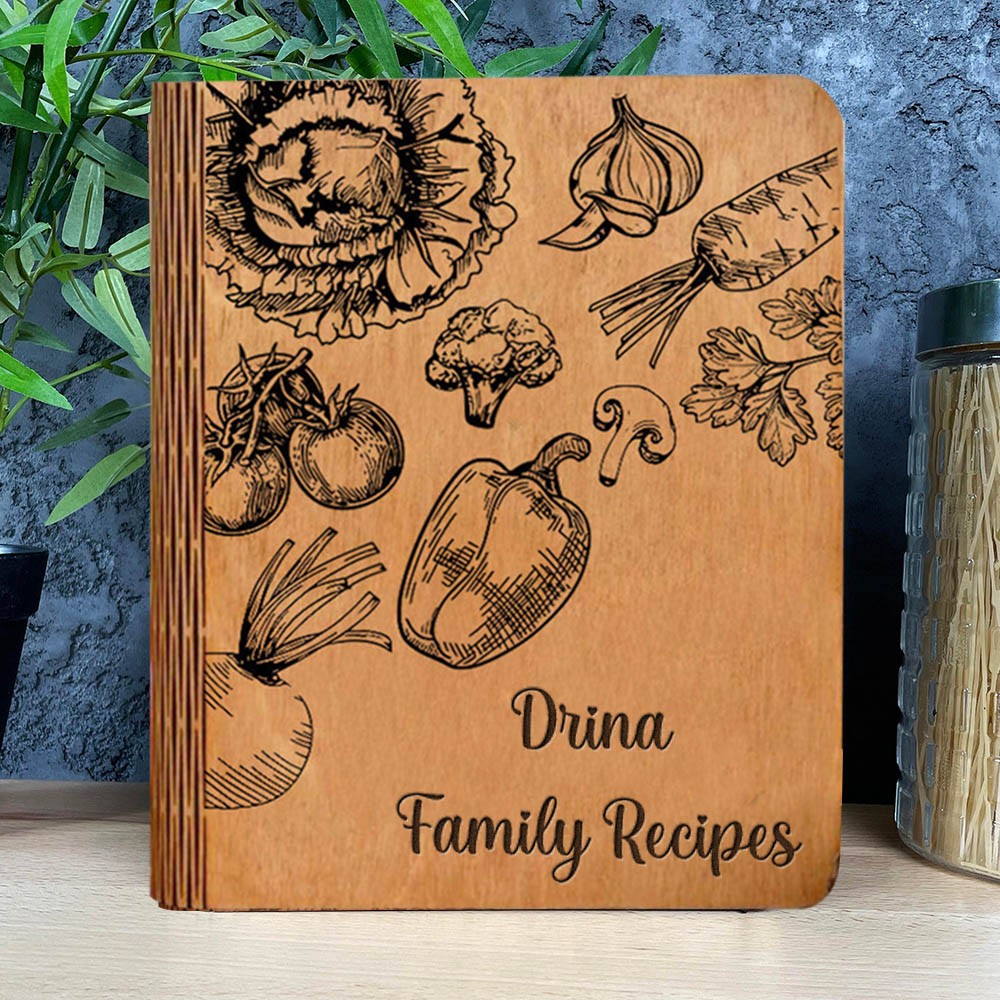 Gepersonaliseerd houten oma's receptenboek met blanco binder, gepersonaliseerd gegraveerd dagboek voor moeder, oma, familie, kerstcadeau