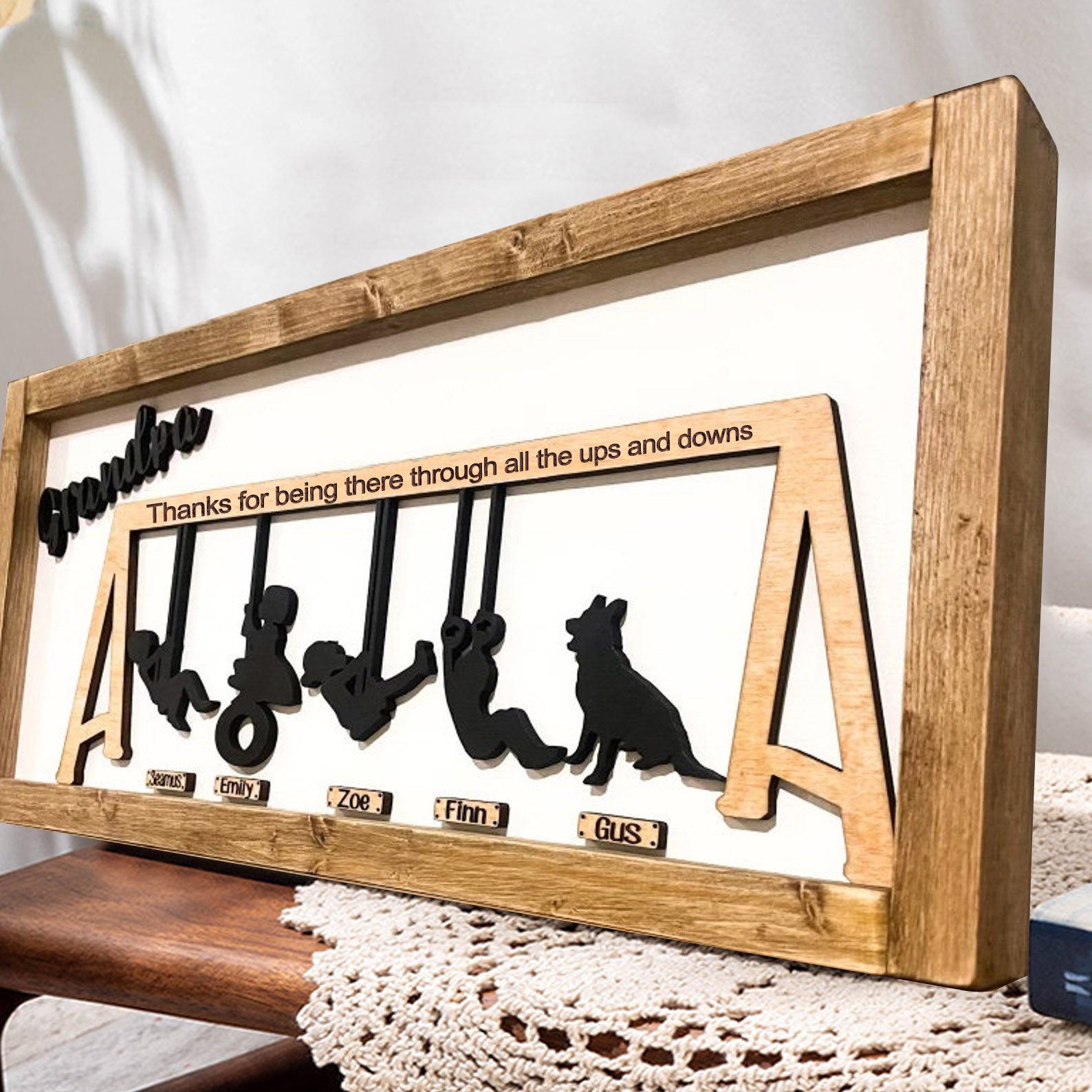 Gepersonaliseerd houten schommelsetbord voor Moederdagcadeau
