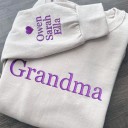 Gepersonaliseerde oma geborduurde sweatshirt hoodie met kindernamen voor Moederdag cadeau