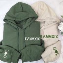 Gepersonaliseerde hoodie voor koppels met geborduurd Romeins cijfer als jubileumcadeau
