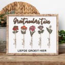 Gepersonaliseerde oma's tuin, liefde groeit hier, geboortebloembord met kindernamen, houten frame, uniek cadeau voor moeder, oma, Moederdag cadeau-ideeën