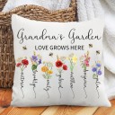 Gepersonaliseerd "Love Grows Here" geboortebloemkussen met namen