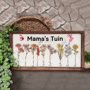 Gepersonaliseerde Mama's Tuin Kunstprint met Geboortemaand Bloemen – Houten Familiebord – Uniek Moederdag Cadeau voor Mama & Oma